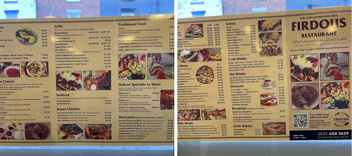Discover a culinary haven at Firdous Restaurant in Birkenhead! Offering a diverse menu of Halal, Asian, Kurdish, Turkish, Mediterranean, and English dishes, there's something for everyone. Enjoy delicious meals for lunch or dinner, easy takeaway, or dine-in in a welcoming atmosphere. Catering for private events available. Call now to explore our delightful flavors and taste the difference!